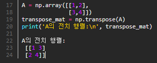 A 행렬의 1행 2열의 값을 2행 1열의 값으로,
